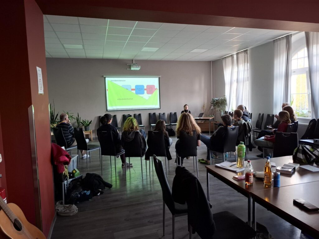 Am Nachmittag fand eine Zukunftswerkstatt mit „Easy“ aus Leipzig statt. Dabei lag ein besonderer Fokus auf einer gesunden Entwicklung der sogenannten Blauen Stufe. Intensiv wurde über die bestehende Stufenproblematik sowie über das Wegbrechen von Mitgliedern im Alter zwischen etwa 13 und 14 Jahren gesprochen.